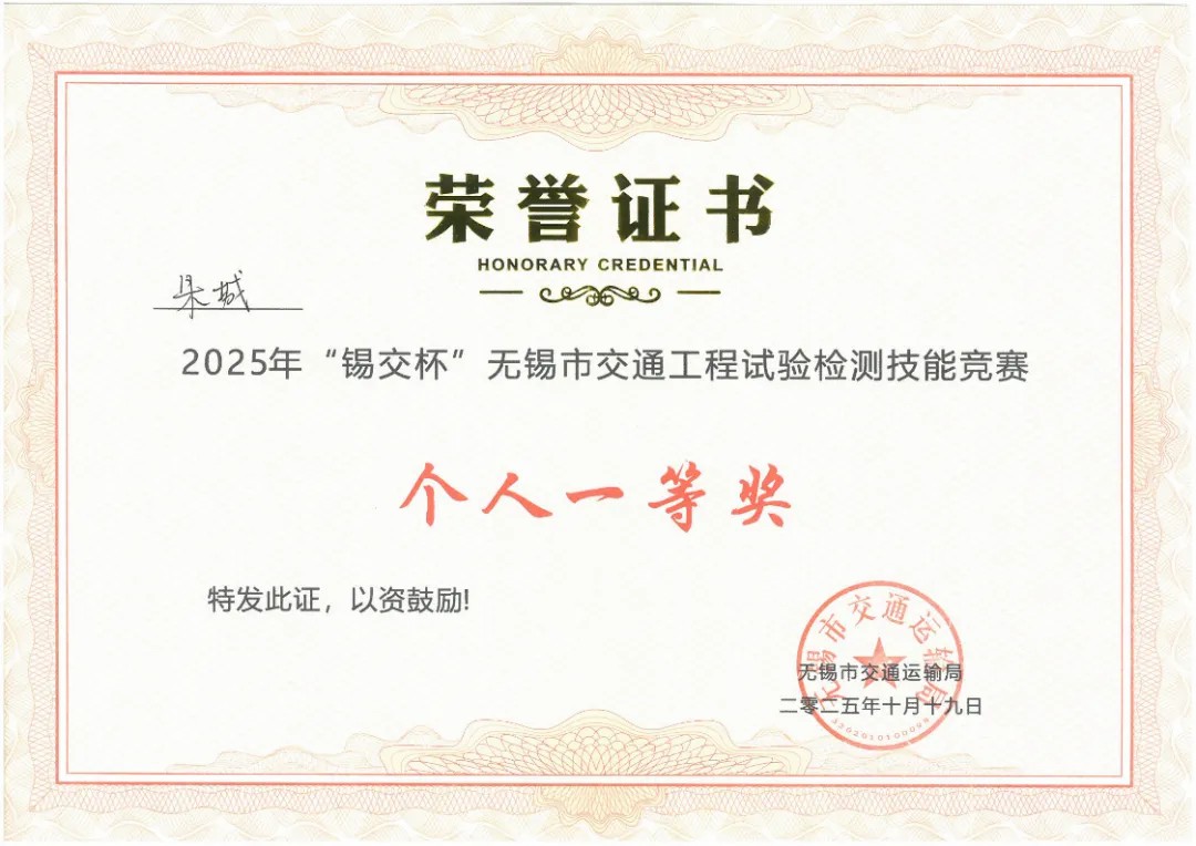 本次竞赛由无锡市交通运输局主办,汇聚了全市各区县及检测企业的十五支代表队、四十五名检测技术精英同台竞技。竞赛内容涵盖理论考核与现场实操,全面检验参赛者的综合技术能力。在强手如林的赛场上,中研公司团队沉着应战,默契配合,将日常工作中积累的丰富经验和严谨态度发挥得淋漓尽致。他们规范的操作流程、精准的数据分析和高效的问题解决能力,赢得了评委组的高度认可,充分展现了公司在工程检测领域的专业权威与技术硬实力。