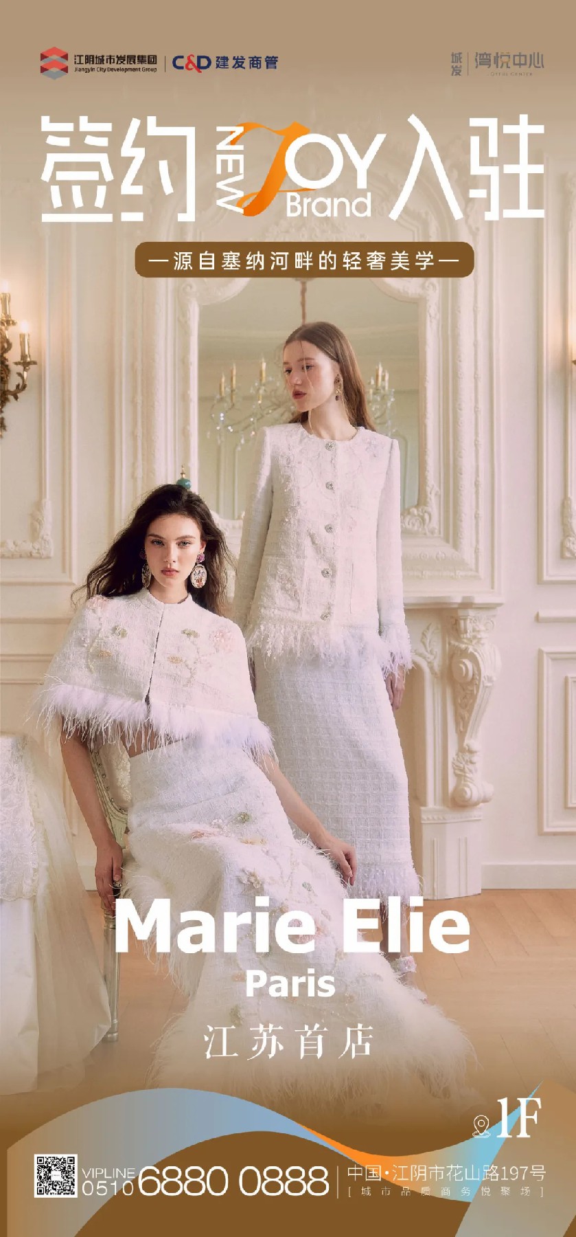 MarieElie进入江苏的首站,抢先入驻城发|湾悦中心。不仅为江阴注入了浓厚的法式美学气息,更提前填补了区域内高端法式女装的空白。这一携手将为江阴及周边城市带来全新的品质休闲与生活体验。